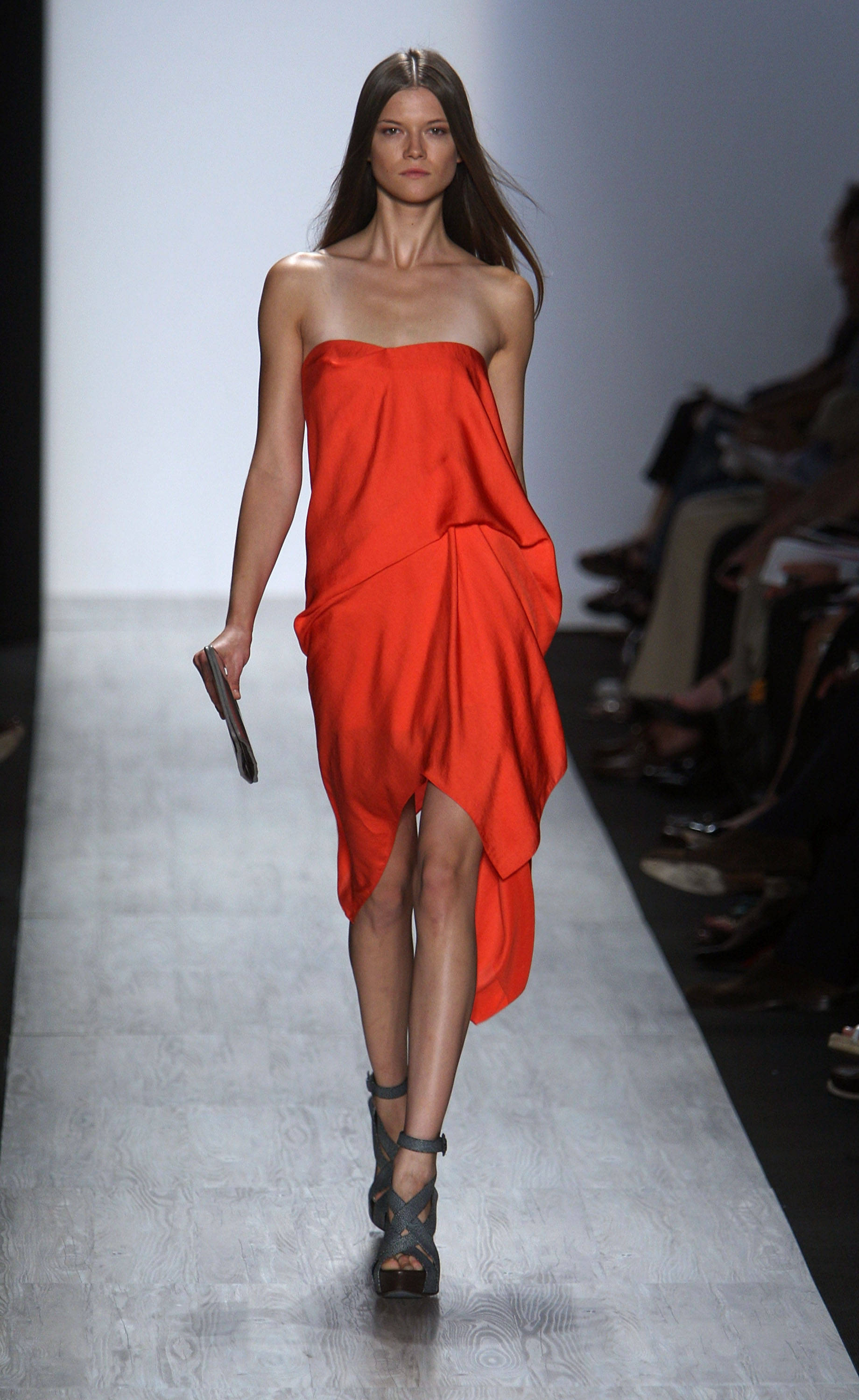 A model walks the runway during the BCBG Max Azria Spring 2009 fashion show during Mercedes-Benz Fashion Week at The Tent in Bryant Park on September 5, 2008 in New York City.